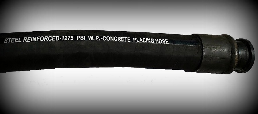 Premium fabric placing hose 1200/1233 PSI working pressure. We also carry non-marking hose. We use only hardened heat treated ends unless internally expanded is requested.